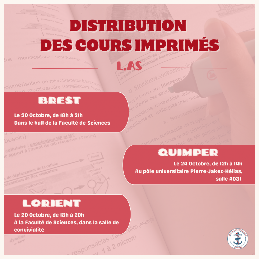Nous avons le plaisir de vous annoncer la tant attendue distribution des cours imprimés L.AS de l’UE Domaine Santé et Compétence Santé ! 🔊📚